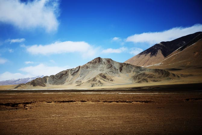 褶皱山海拔4289m,为石炭-二叠系(距今约2.5~3.5亿年)中发育的不协调褶皱形成的山体,底部宽约1.5km,属小型构造地貌,岩性主要为变质砂岩及结晶灰岩。其形成主要受到华力西期-喜马拉雅期构造运动的影响,沿断裂负地貌发育逆断层,断裂经过之处,岩层产状紊乱,岩石十分破碎,形成宽约数十米的挤压破碎带,岩层整体扭曲,表现为不协调褶皱,单个褶皱波长(宽)约为400m~800m不等,波幅(高)约为30m~50m不等。