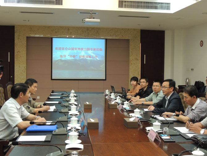 此次演练工作按照以下四个阶段依次开展,一是昆仑山国家地质公园“申世”迎检工作汇报会;二是参观江源路小学科普教育夏令营活动;三是参观昆仑山国家地质公园博物馆;三是园区考察。