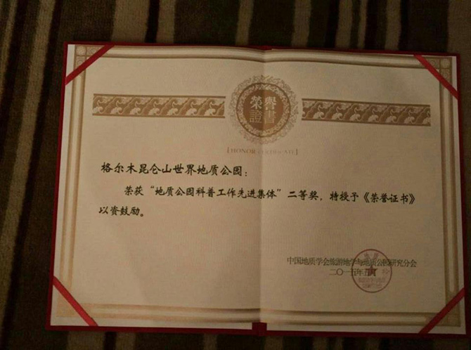 近日,昆仑山世界地质公园在“旅游地学30周年及地质公园15年纪念会”在2015年将迎来旅游地学创立30周年,中国国家地质公园诞生15周年旅游地学和地质公园界的重大节日之即,荣获国家“地质公园科普工作先进集体”称号。