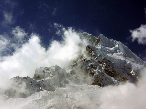 是玉珠峰的姊妹峰,位于昆仑山口的西侧,海拔5980 m。玉虚峰以群山为座,矗立云霄,终年积雪,现代冰川活动剧烈,冰川覆盖面积达80km2。