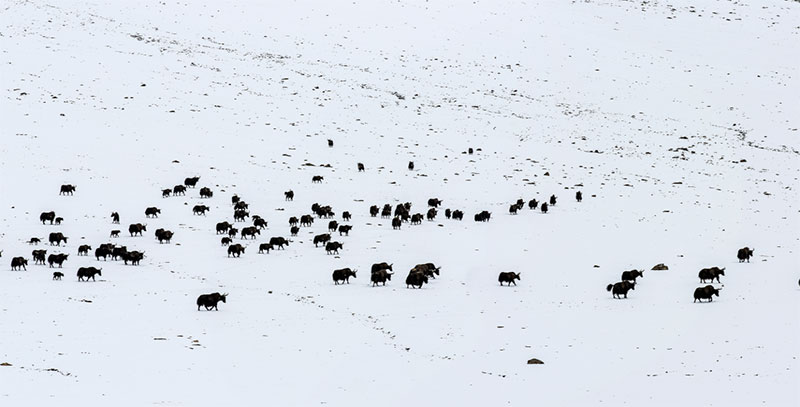是家牦牛的野生同类,四肢强壮,身被长毛,胸腹部的毛几乎垂到地上,可遮风挡雨,舌头上有肉齿,凶猛善战。是典型的高寒动物,性极耐寒,为青藏高原特有牛种,栖息于海拔3000~6000 m的高山草甸地带,国家一类保护动物。