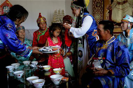 海西蒙古族是蒙古民族和硕特部的主体,和硕特部是西蒙古四部之一,由于长期群落独居,因此礼俗风尚独具特色。海西蒙古族在孩子未长到三岁前,孩子的胎毛不准剪发、不准染尘、不准洗梳;剪发礼首先要掐算剪发吉祥日;仪式首先剪发贵人开第一剪,其次是家剪,三是客剪;参加剪发礼的客人要给被剪发孩儿赠送礼品;一是哈达,象征吉祥如意;二是年幼母畜,象征财富,是孩子的第一笔财产,它与孩子一起成长、繁殖;剪发礼赞词是对孩子一生的教育珍言。